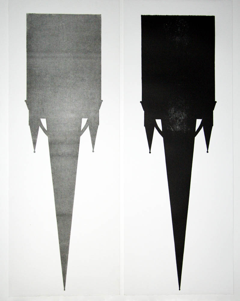 Series of etchings, embossments, mono and collotype prints translating ascending architectural glory into descending gothic anxiety.