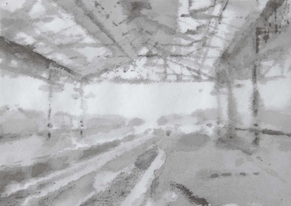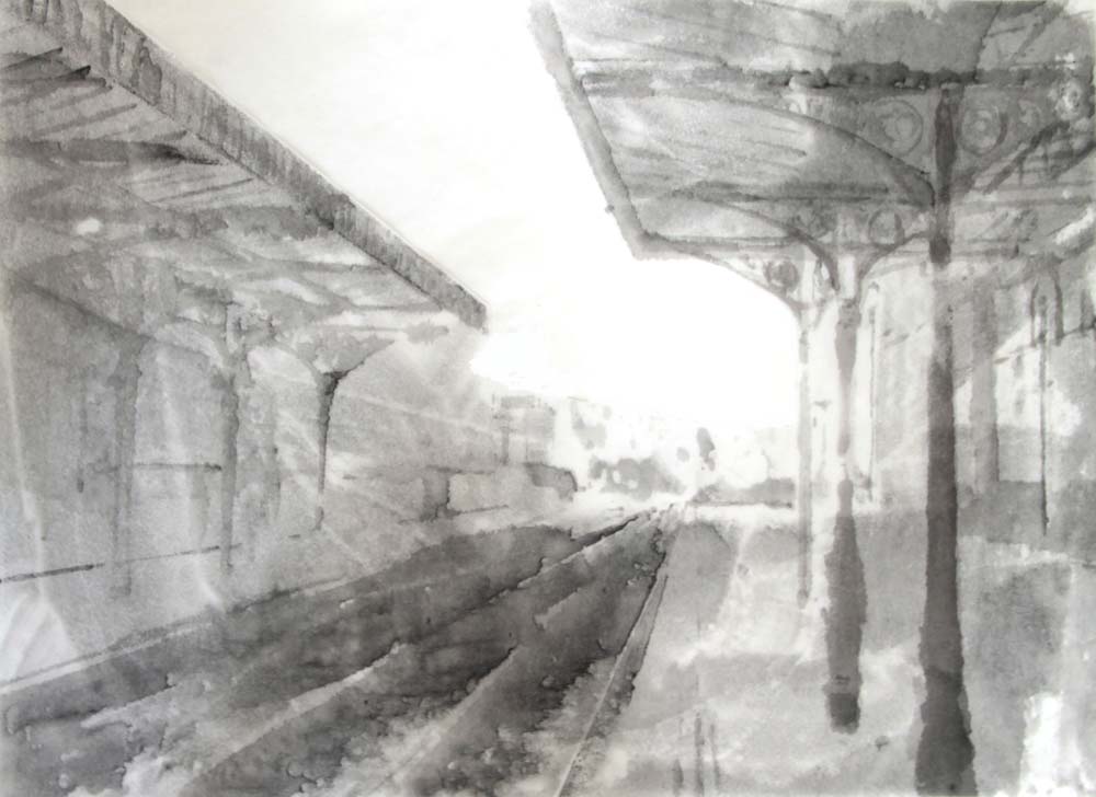 A series of monotype prints on the melancholia of the railway station. A solitary moment in a public space between trains, between lives.